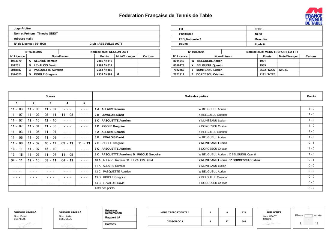 J3 | 21/03 | MERS TREPORT EU T.T. 1 | 1 - 8 | OC CESSON 1 | |