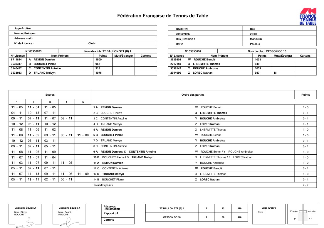 J3 | 20/03 | BAULON/ST THURIAL 1 | 7 - 7 | OC CESSON 10 | |