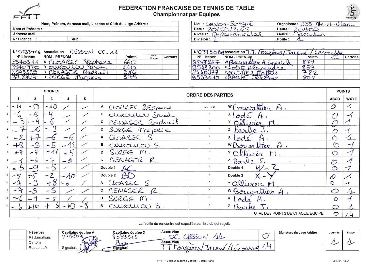 J1 | 20/09 | OC CESSON 11 | 0 - 14 | TTFJL 9 | |