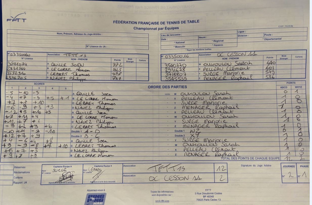 J2 | 27/09 | THORIGNE-FD TT 13 | 12 - 2 | OC CESSON 11 | |