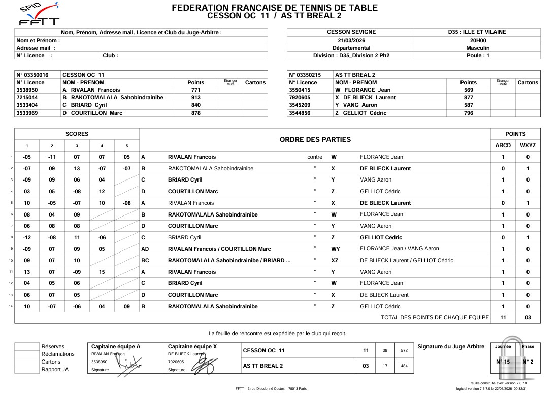 J3 | 21/03 | OC CESSON 11 | 11 - 3 | AS BREAL TT 2 | |