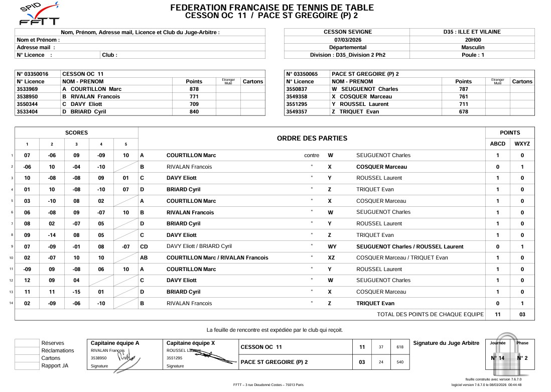 J3 | 11/10 | OC CESSON 11 | 4 - 10 | OC CESSON 10 | |