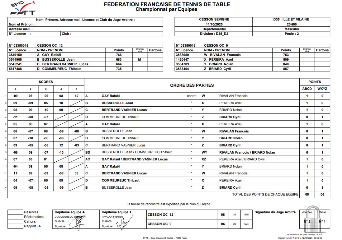 J1 | 20/09 | OC CESSON 12 | 7 - 7 | TTFJL 8 | |