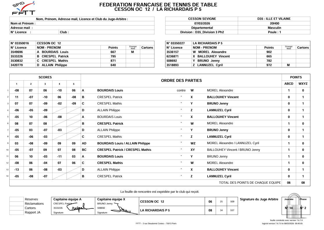 J2 | 07/03 | OC CESSON 12 | 6 - 8 | LA RICHARDAIS PING 5 | |