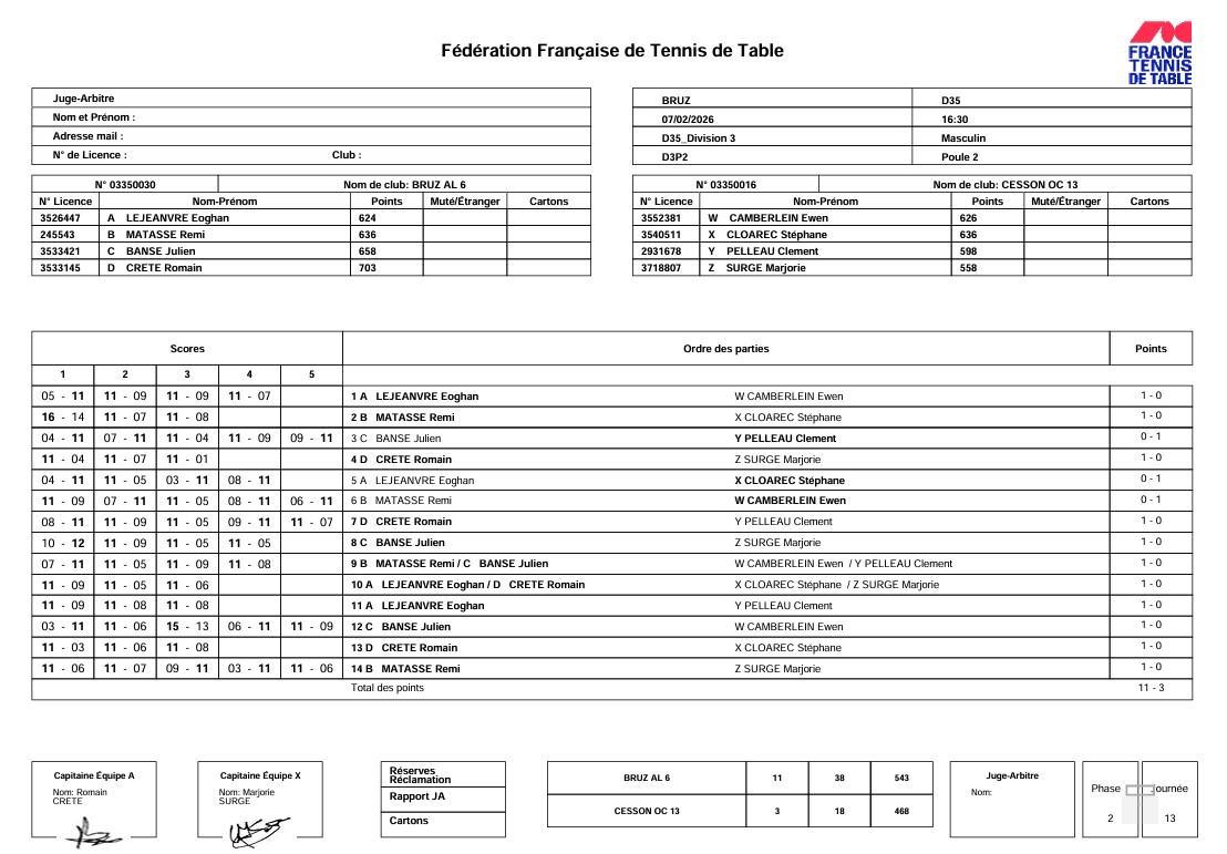 J1 | 07/02 | BRUZ AL 6 | 11 - 3 | OC CESSON 13 | |
