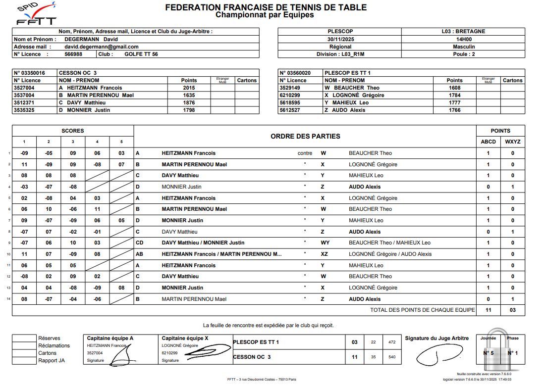 J4 | 16/11 | OC CESSON 3 | - | LANDERNEAU TT 1 | |