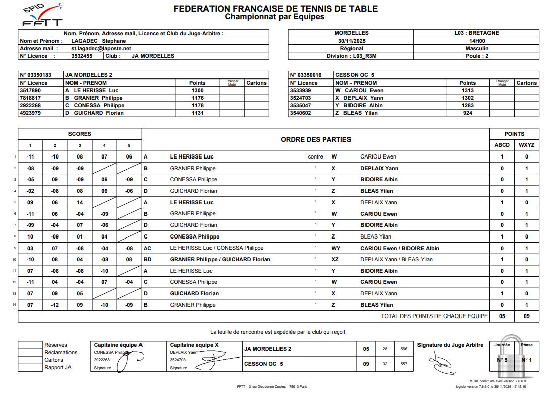 J5 | 30/11 | JA MORDELLES 2 | 5 - 9 | OC CESSON 5 | |