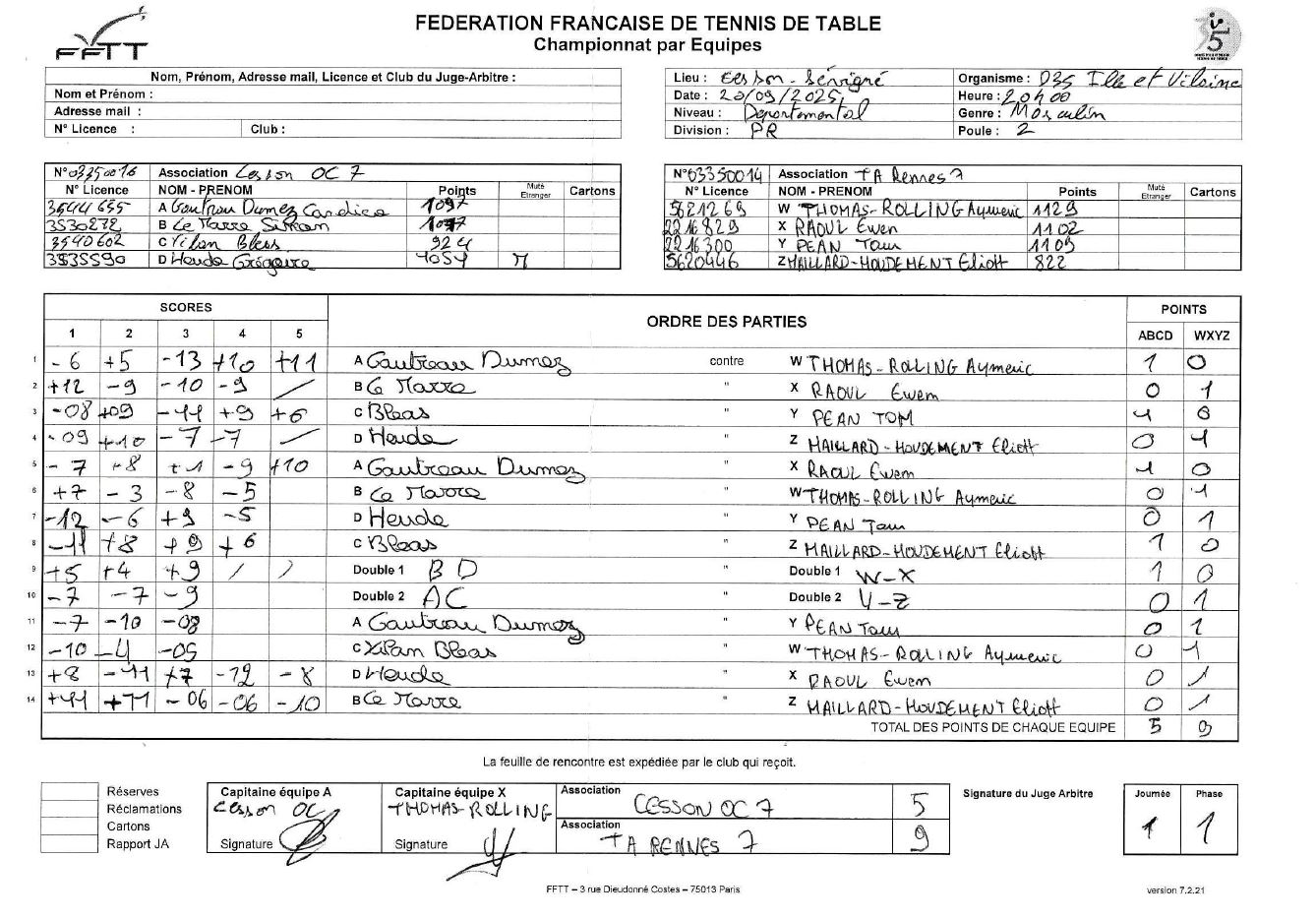 J5 | 29/11 | THORIGNE-FD TT 10 | - | OC CESSON 7 | |