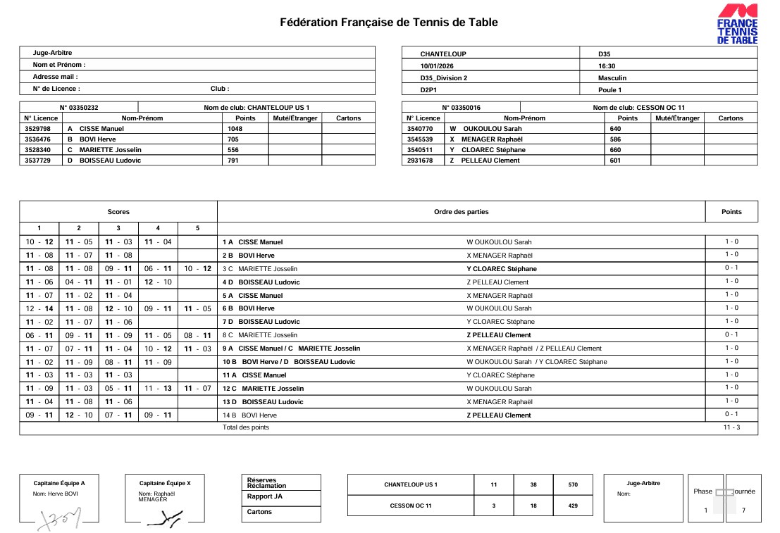J7 | 10/01 | CHANTELOUP US 1 | 11 - 3 | OC CESSON 11 |