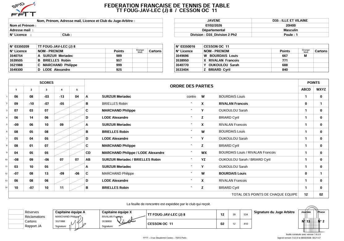 J1 | 07/02 | TT FOUGERES-JAVENE-LECOUSSE 8 | 12 - 2 | OC CESSON 11 | |