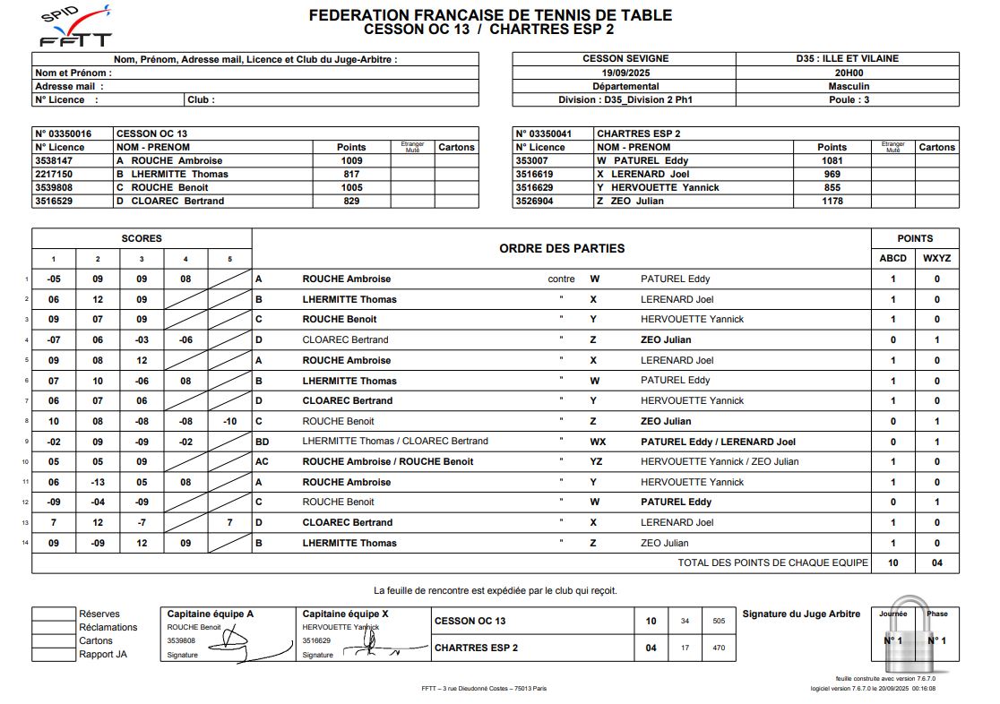 J1 | 19/09 | OC CESSON 13 | 10 - 4 | CHARTRES ESP 2 | |
