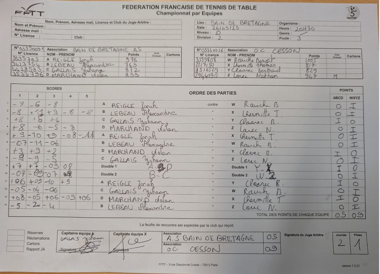 J2 | 26/09 | BAIN US 1 | 5 - 9 | OC CESSON 13 | |