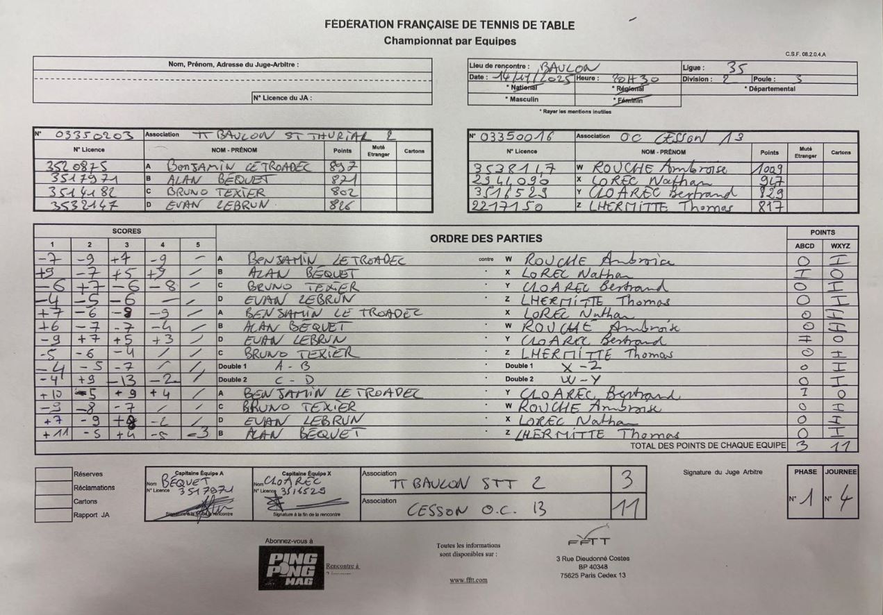 J4 | 14/11 | BAULON/ST THURIAL 2 | 3 - 11 | OC CESSON 13 | |