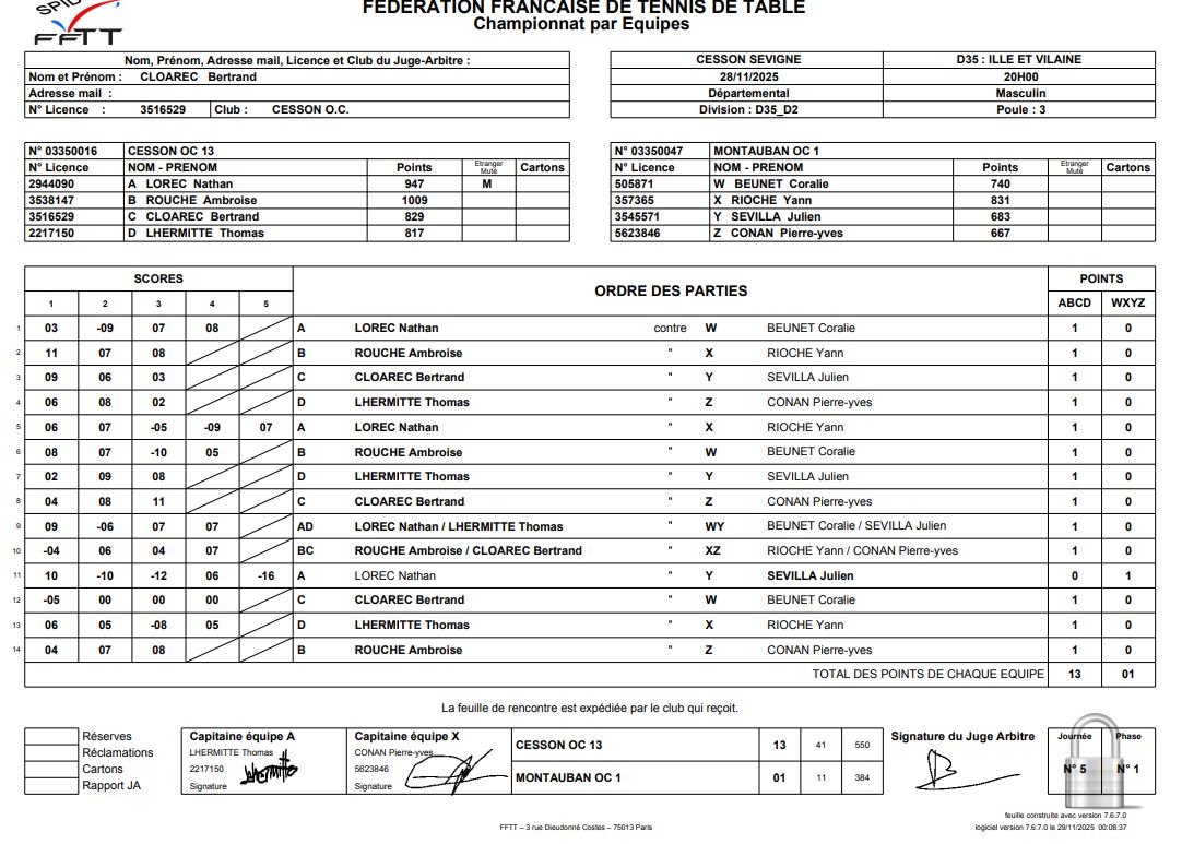 J6 | 12/12 | OC CESSON 13 | - | GUIPRY-MESSAC US 1 | |
