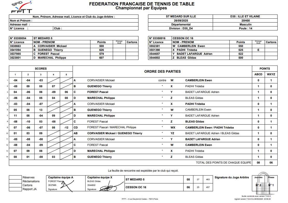 J2 | 26/09 | ST MEDARD TT 5 | 8 - 6 | OC CESSON 16 | |
