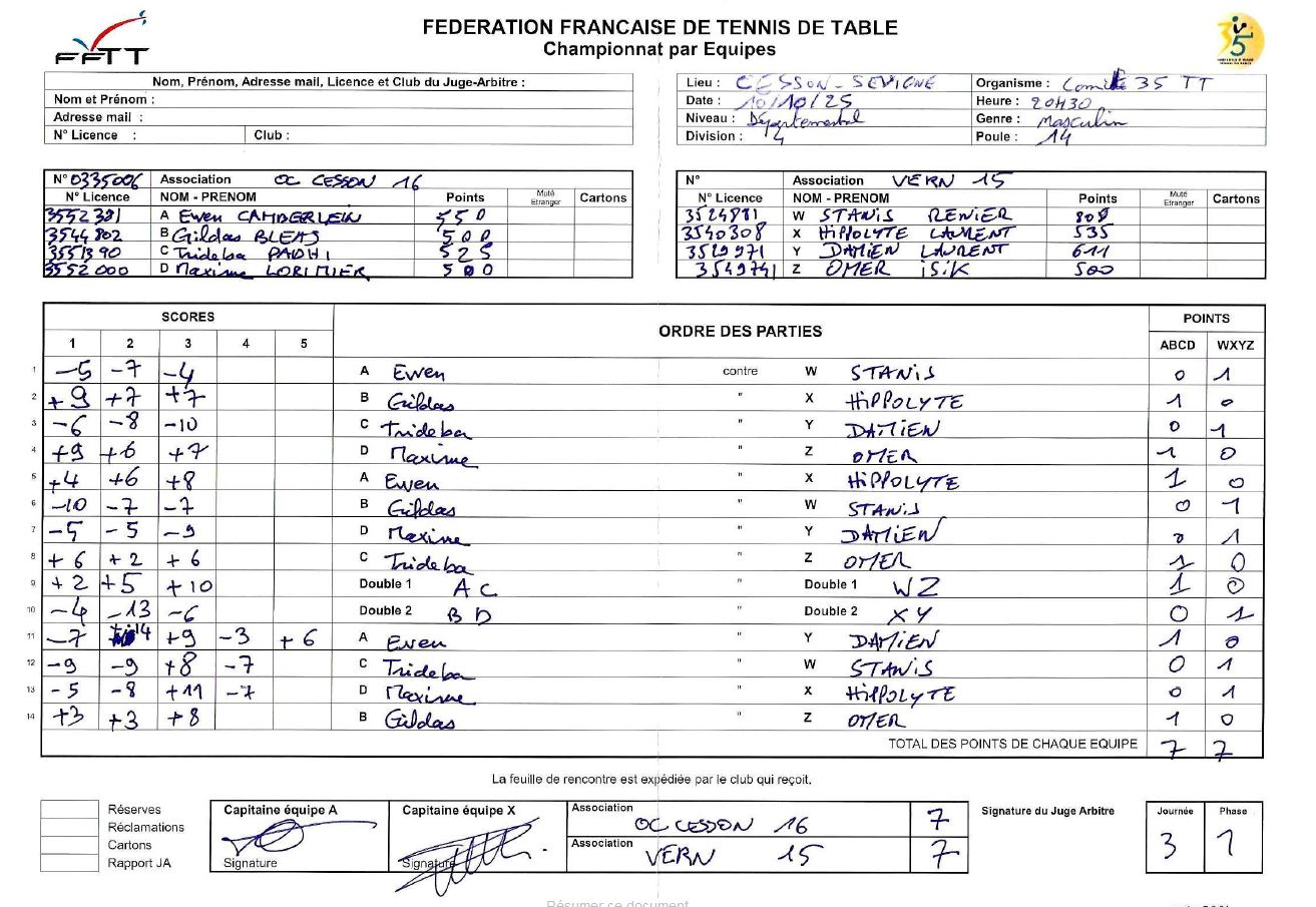 J3 | 10/10 | OC CESSON 16 | 7 - 7 | VERN US 15 | |