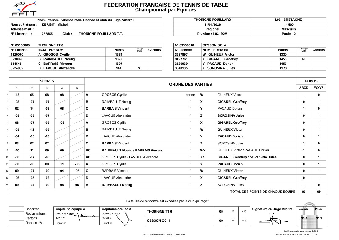 J3 | 22/03 | THORIGNE-FD TT 6 | - | OC CESSON 4 | |