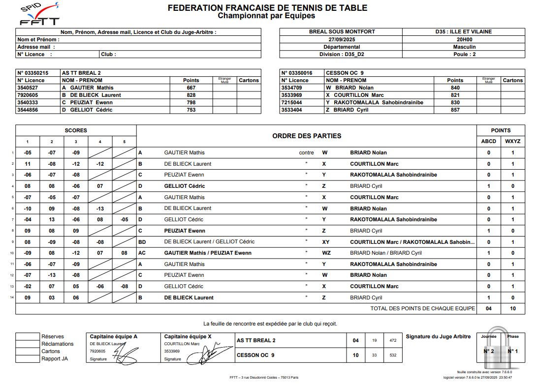 J2 | 27/09 | AS BREAL TT 2 | 4 - 10 | OC CESSON 9 | |